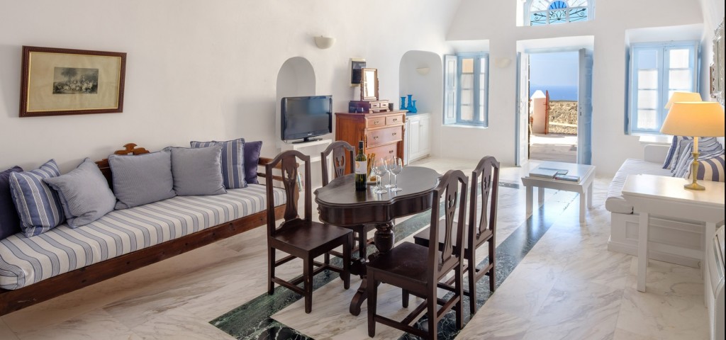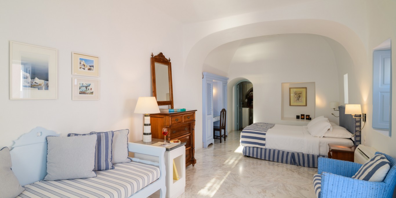 The Authentic Santorinià Residences are well-suited for families of 3–4 guests, with an additional guest comfortably accommodated on the sofa bed.