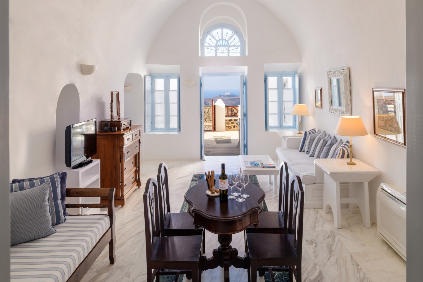 With a spacious living area and traditional furnishings, the Authentic Santorinià Residences encourage unhurried moments and a sense of connection to Santorini’s architectural heritage.
