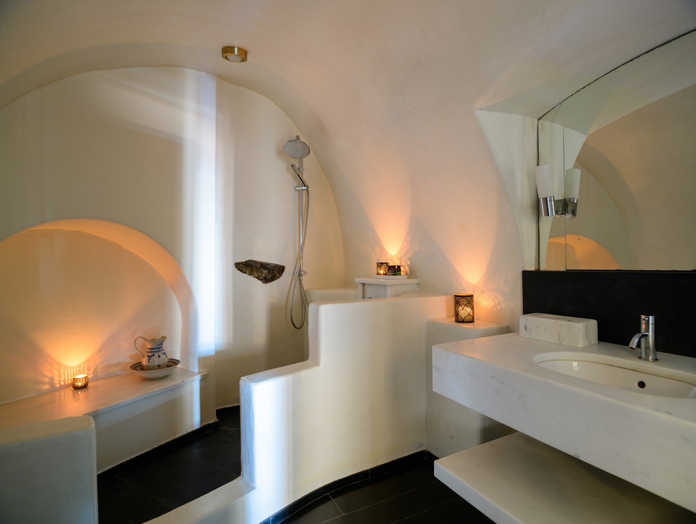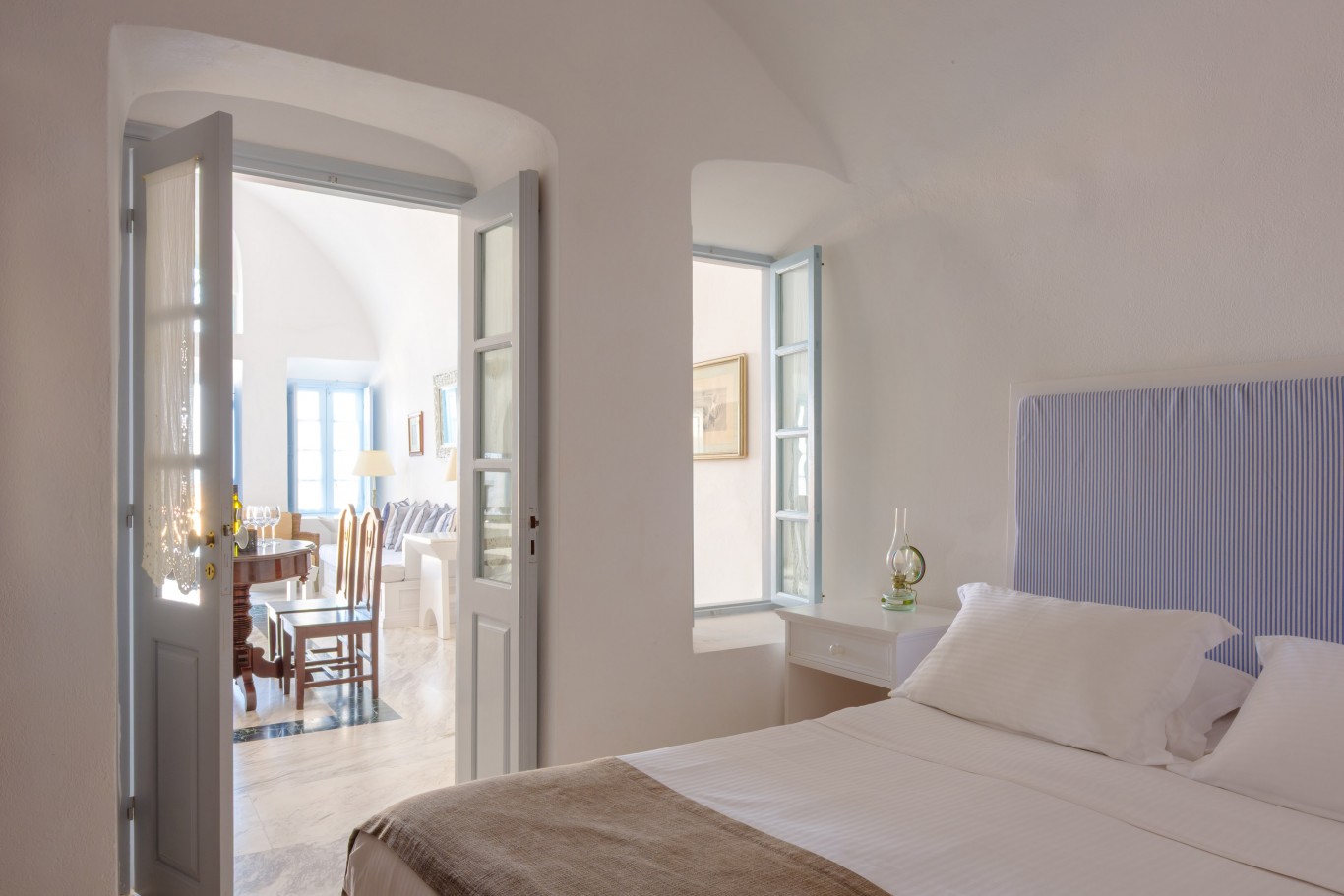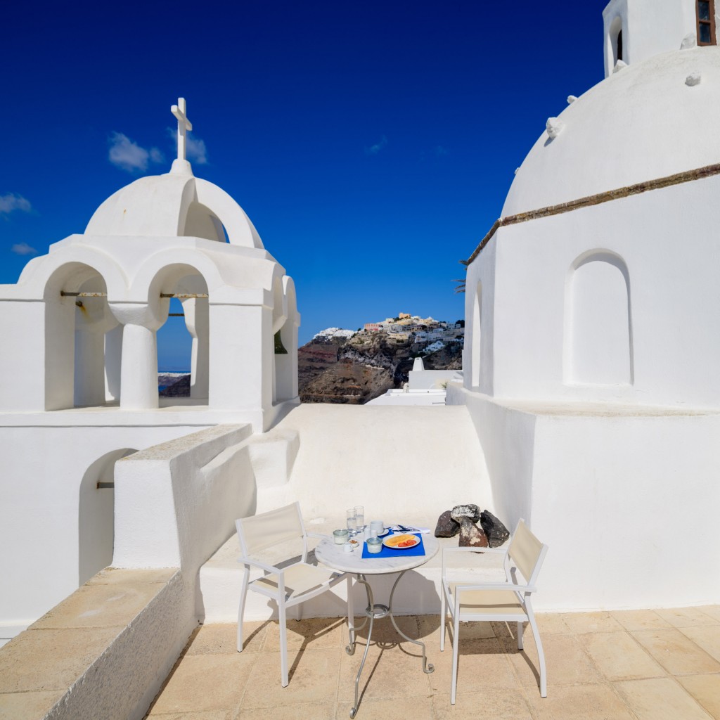 Spend time on the shared terrace, taking in the caldera, volcano, and sea views, framed by the Cathedral’s white dome. Inside, the cave residences offer a calm and naturally cool retreat, ideal for relaxing together after a day exploring the island.