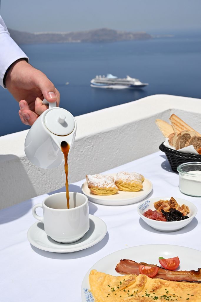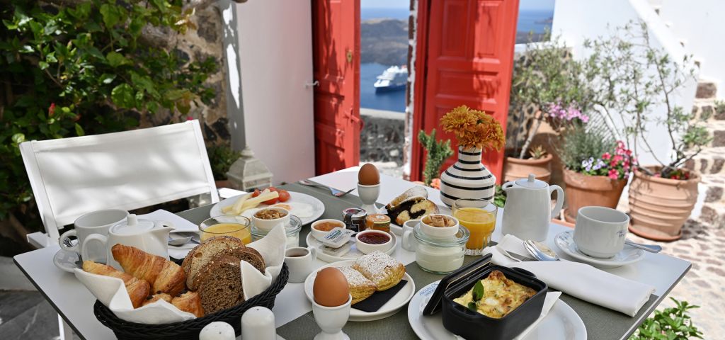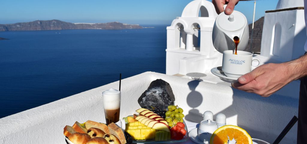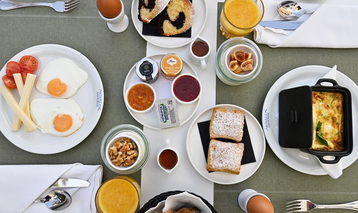Breakfast at Aigialos is one of the defining moments of a stay in Santorini. Served on your private balcony or terrace, it is designed to be slow, generous, and savored while overlooking the deep blue of the caldera.